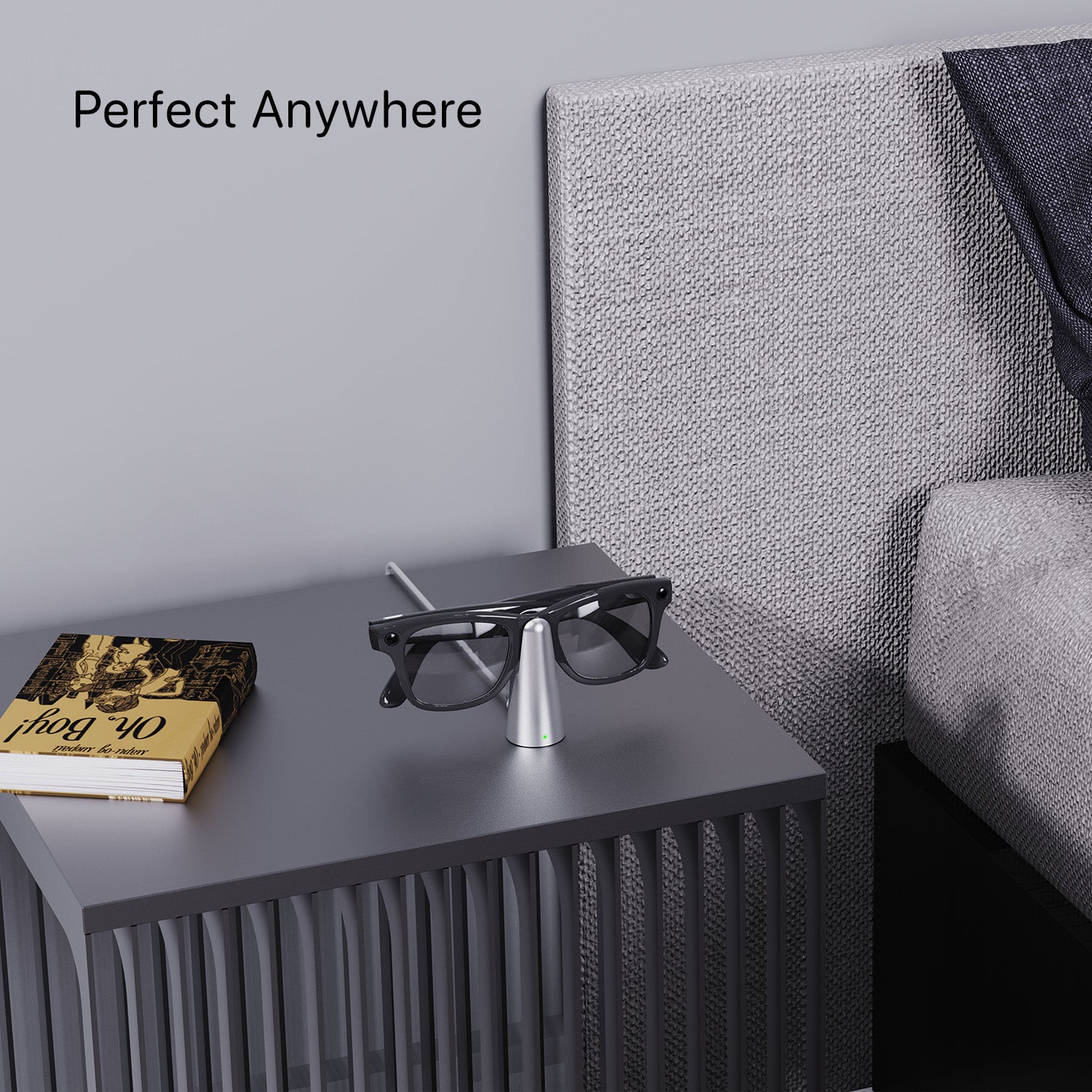 - Integrated charging wedge keeps glasses secure while charging